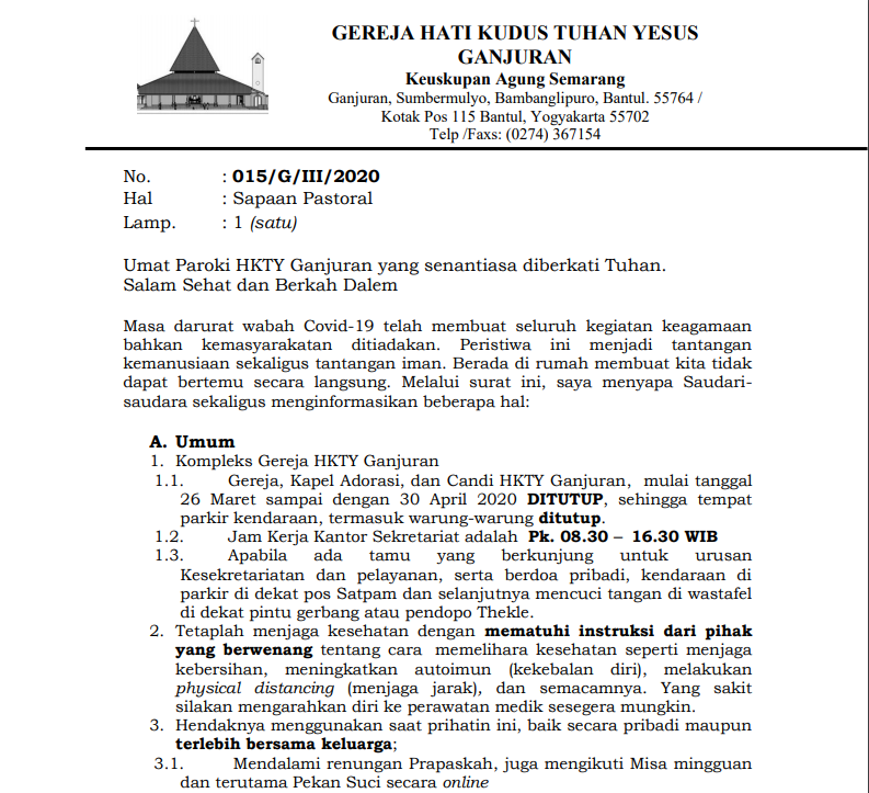 Umat Paroki HKTY Ganjuran yang senantiasa diberkati Tuhan.Salam Sehat dan Berkah DalemMasa darurat wabah Covid-19 telah membuat seluruh kegiata...